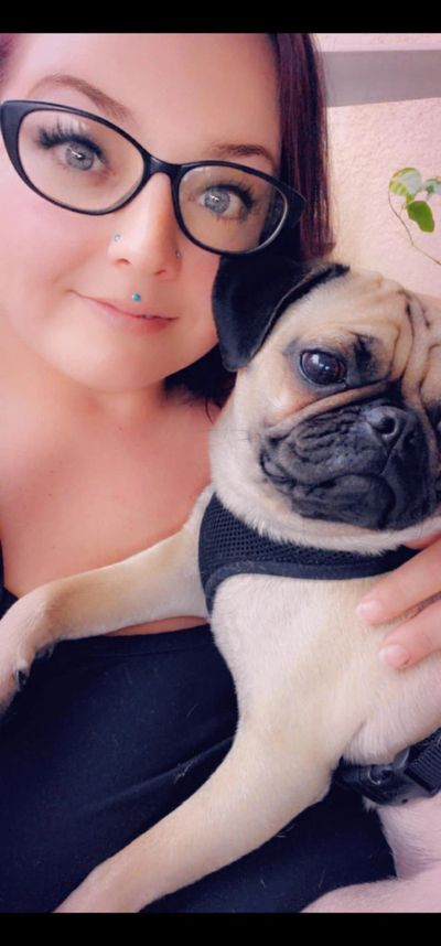 At home, I’m a pug mom to Odin, and have a 1-year-old panther chameleon named Morty